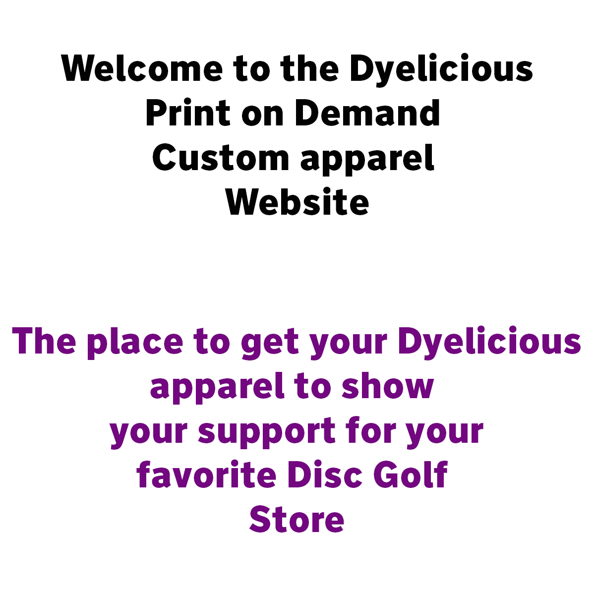 You can shop for the apparel you want with the Dyelicious logo on them. You can also go into the Design feature and even add your own logos, names, PDGA number or whatever you want to the apparel.